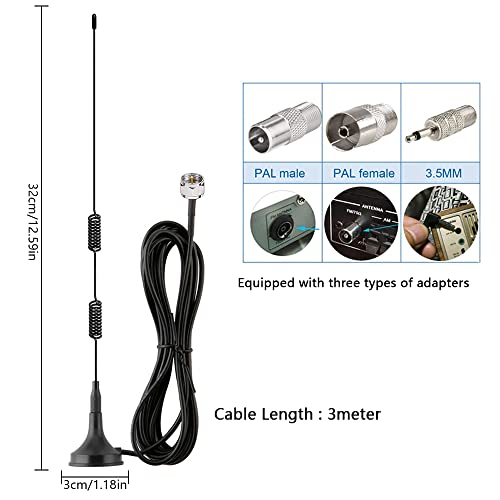 【Pacchetto】 La nostra antenna radio per interni è dotata di supporto magnetico per base, cavo coassiale da 1x3 metri/9,84 piedi e adattatore per connettore 3x (adattatore incluso 1: F femmina a spina da 3,5 mm;