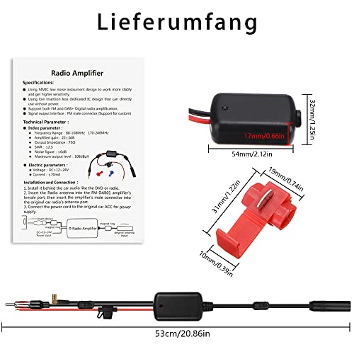 【Applicazioni】Amplificatore di segnale per antenna radio FM AM stereo per auto universale, alimentatore 12V Adattatore per spina DIN Motorola per autocarro SUV Autoradio Ricevitore per unità di testa multimediale stereo.