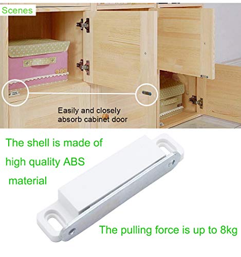 Potente magnete: la chiusura magnetica ha 2 potenti magneti e ventose in metallo da 2 mm di spessore, che possono assorbire facilmente e da vicino le ante di armadi, cassetti, ecc., con aspirazione e lunga durata, e la forza di trazione è fino a 8 kg.