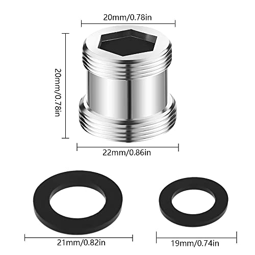 Imballaggio e dimensioni: riceverai 2 pezzi di rubinetto aeratore adattatore e 4 guarnizioni in gomma nera. Dimensioni adattatore rubinetto: filettatura maschio da M20 a filettatura maschio M22;