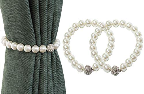 SPTwj 2 Pezzi Fermatenda Magnetici - Fibbia in Tieback per Fermatenda Tende Holdback Magnetica Clip di Tenda del Perla Accessori per Tende per la Decorazione di Casa e Ufficio - bianco