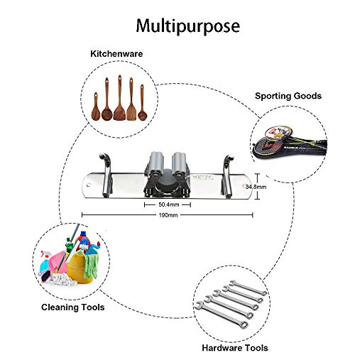 SPTwj - Supporto per scopa e mocio, in acciaio inox, autoadesivo da parete, per riporre spazzoloni e utensili