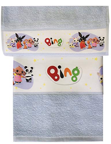 Set Spugna BING Coppia 2 Pezzi 1+1 Ospite 30 x 50 + Asciugamano 55 x 100 Bassetti Spugna Di Puro Cotone ASILO SCUOLA MATERNA (Bing celeste)