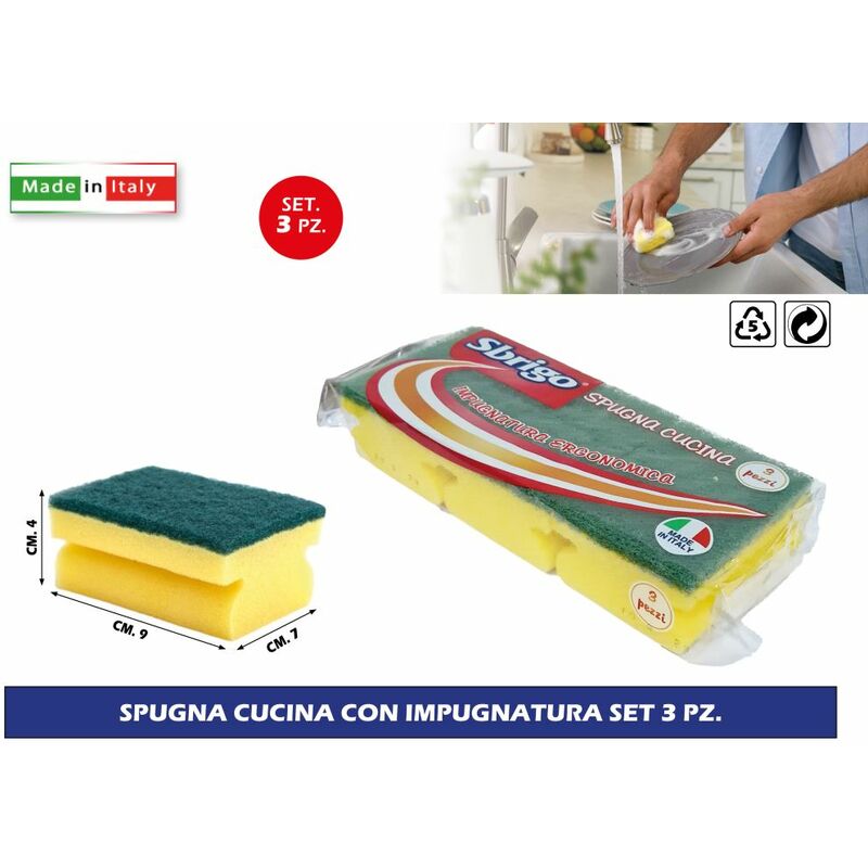 Spugna cucina con impugnatura set 3 pz.
