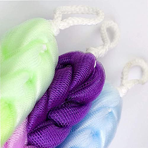 Spugna per doccia, bagno, rete, pouf, luffa, bagno, sbuffi, scrub per la schiena esfoliante per doccia corpo, confezione da 3