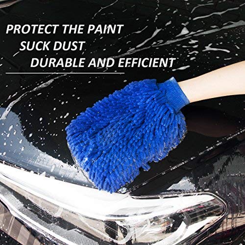 Spugna Lavaggio Auto Manico Microfibra Super Assorbente Lavaggio dell'Auto, Adatte per Cerchioni e Vernice (Guanto, Blu - 1 Pezzo)