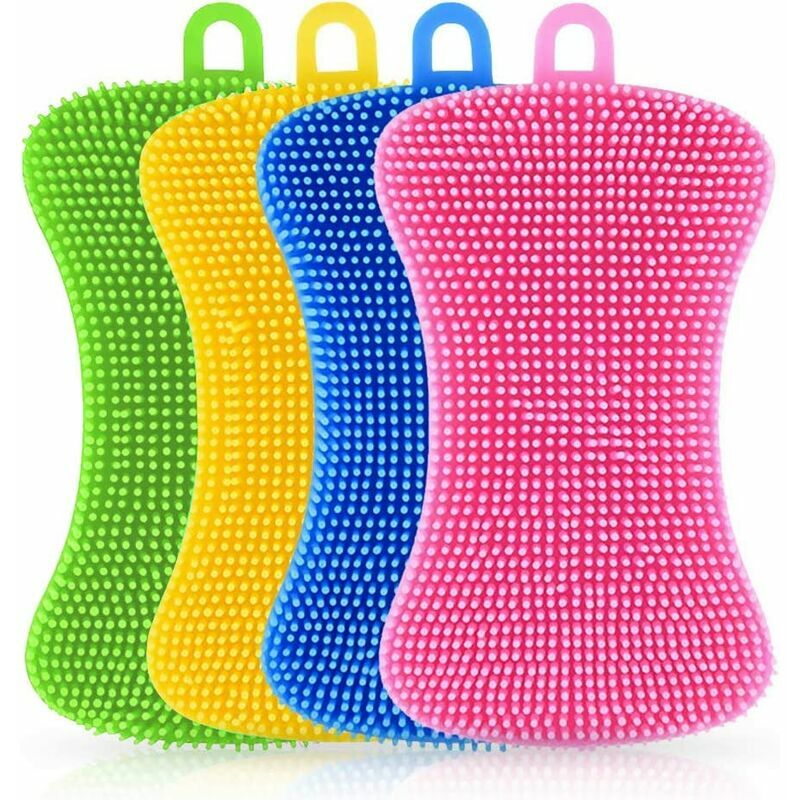 Materiale: realizzato in silicone alimentare, è morbido, atossico, insapore, ecologico e resistente alla deformazione. Durevole e sicuro per un uso duraturo. Design Design a doppia faccia: con un esclusivo design a doppia faccia, è molto facile pulire piatti, pentole, padelle, frutta o verdura. Puoi usare qualsiasi lato che preferisci. Più comodo e pratico. AsyFacile da riporre: c'è un piccolo foro sulla parte superiore di ogni spugna di silicone, che è più facile da appendere dopo ogni utilizzo, non occupa molto spazio e può anche aiutarti mantenere il tempo di utilizzo della spugna da cucina. Multiuso: è molto flessibile e pieghevole, che può raggiungere facilmente il fondo di tazze o altri oggetti a bocca chiusa, aiutandoti a fare un ottimo lavoro. Queste spugne in silicone non possono essere utilizzate solo per lavare i piatti, lavare pentole o padelle, lavare frutta e verdura, ma possono anche essere utilizzate come condimenti caldi o sottopentola.