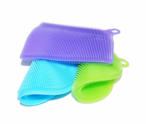 Pack di 3 Spugne Cucina in Silicone, antibatterici per lavare piatti, pentole, bicchieri, frutta, verdure, spazzole, Guanti di gomma elastici Silicone Resistente, Strofinaccio multiuso