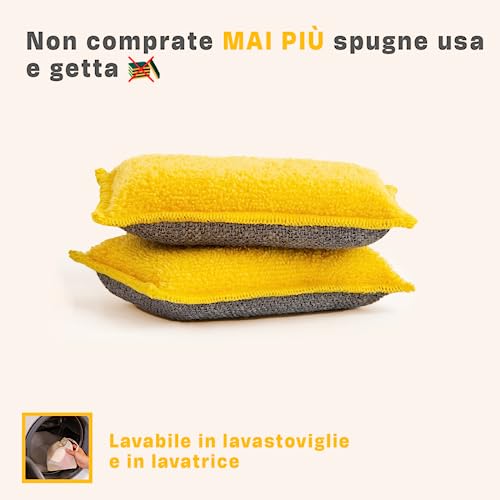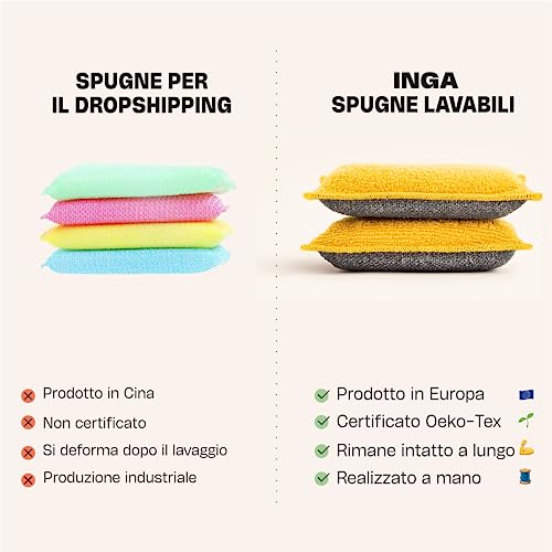 INGA - 2 X Spugne Lavabili Riutilizzabili - Altamente Efficaci, Non Graffiano - Made in Europe - Aggiornamento a Spugne Lavabili Che Durano 1 Anno
