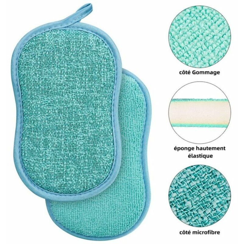 asciugatura, l'altro è satinato per rimuovere i residui di cibo incastrati e lo sporco ostinato. Perfetto per utensili antiaderenti e antigraffio. 【Ampio utilizzo】Adatto per piatti, ciotole, pentole, padelle in acciaio inossidabile, piani cottura e lavelli, ideale per la pulizia delle cucine domestiche. Disponibile anche per bagno, doccia in vetro, piastrelle, finestre, specchi, pavimenti e tutte le superfici dure. 【Cura e pulizia】 Lavabile in lavastoviglie, anche lavabile in lavatrice. asciugare all'aria o appendere a secco. pas de puanteur même après une longue période d'utilisation.