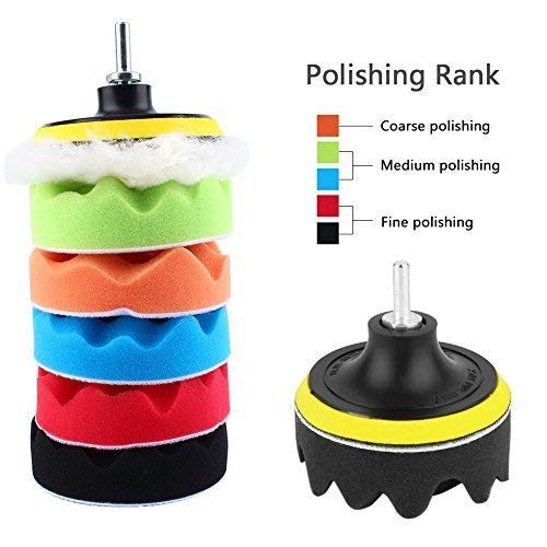 Set di 7 spugne Yosoo per lucidatura auto, spugne da 12,5, 15 e 18 cm, con adattatore per trapano M14