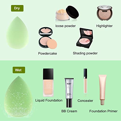 Uso Bagnato e Asciutto Spugnette Trucc: Puoi usare queste spugnette make up direttamente o dopo esserti bagnato. La spugnetta per il trucco diventa più grande e morbida dopo essersi bagnata completamente. L'effetto del trucco dei due metodi è molto buono e la dimensione originale verrà ripristinata dopo l'asciugatura.