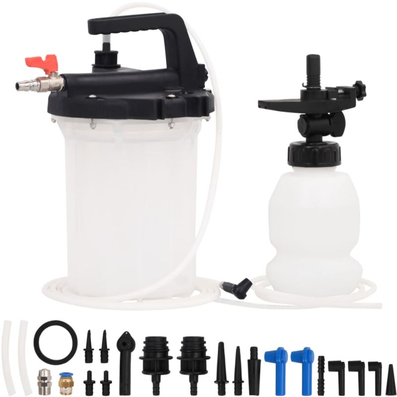 Questo spurgo dei freni semplifica lo spurgo dell'aria e del vecchio fluido in modo rapido e corretto dalle linee dei freni! Facile da usare: questo spurgo del liquido dei freni è alimentato da aria compressa e aspira rapidamente l'olio esausto, consentendo un'estrazione stabile e una buona raccolta del vecchio fluido senza schizzi. Tubo trasparente: il tubo trasparente dello spurgo della frizione consente l'ispezione visiva dei vecchi fluidi durante l'estrazione del fluido. Nessuna macchia: con questo spurgo fluido, non dovete preoccuparvi delle macchie di olio sul pavimento durante il processo di estrazione del fluido. Ampie applicazioni: questo kit di spurgo della frizione si adatta alla maggior parte dei sistemi frenanti e semplifica la rimozione di aria e fluido vecchio dalle linee dei freni quando e dove ne avete bisogno. Colore: Bianco e nero Materiale: Acciaio, PE, PP, PVC, silicone, nylon Capacità: 3 L Dimensioni del corpo dello spurgo dei freni: 24 x 15 x 31 cm (L x P x A)