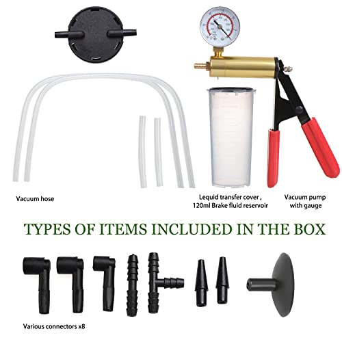 Kit completo di spurgo dei freni: include accessori per lo spurgo dei freni e la diagnosi automobilistica. Il set di pompe a vuoto può testare e diagnosticare un'ampia varietà di parti e sistemi comuni su qualsiasi veicolo.