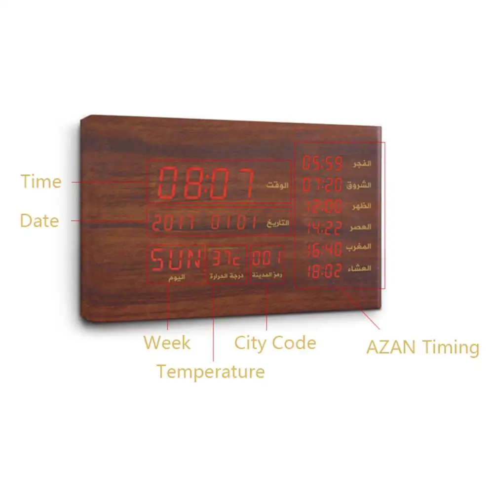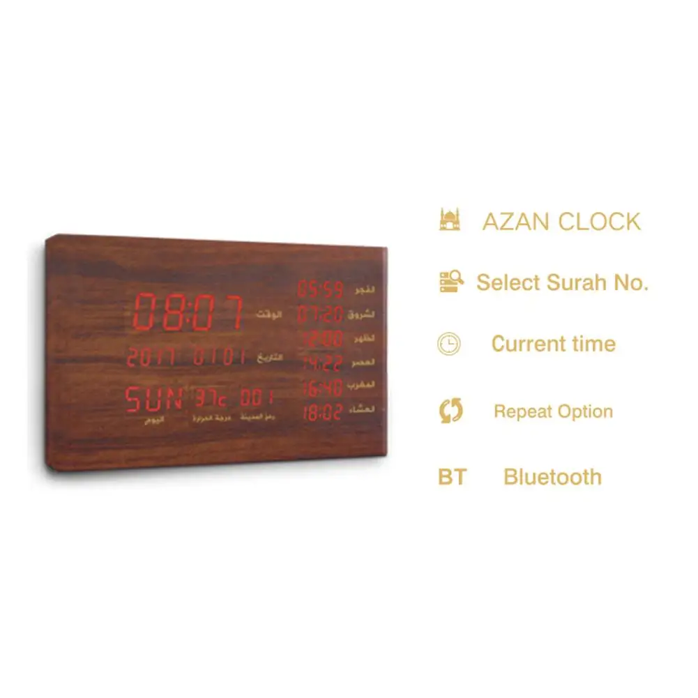 SQ600 Bluetooth Speaker Muslim Gift Wood Azan Prayer Clock Display Time Temperature Bluetooth Quran Player Qur'an Speaker Alarm