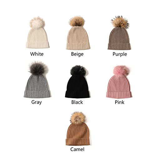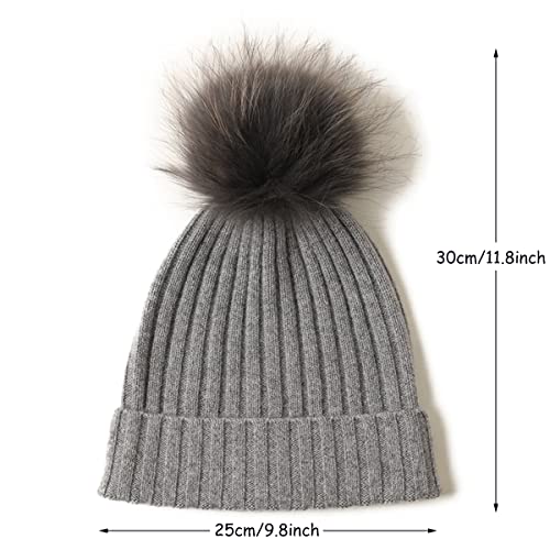 SQCOOL Berretto Invernale in Maglia da Donna, Caldo Cappello Maglia in Cashmere con Pompon Rimovibile, Morbido Cappelli da Sci Bobble cap per Ragazze, Regalo Natale per Mamma Invernale Gray