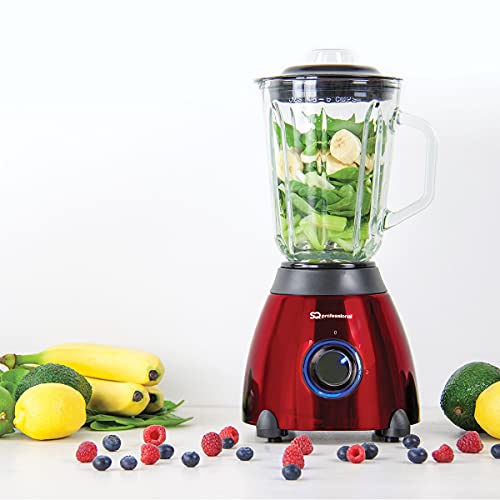 SQPRO Luminate 500 W Blender with 1.5 Litre Glass Measuring Jug and Grinder for Dry Ingredients Red, Black or Silver (Ruby Red) by SQ Professional