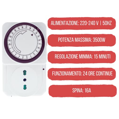 ➤ PROGRAMMATORE GIORNALIERO: il timer analogico è uno strumento molto utile per programmare l'accensione o lo spegnimento degli elettrodomestici in casa. Una volta impostato l'orario resta in automatico per sempre fino a quando non lo cambierai