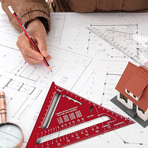 Squadra da Falegname in Lega di Alluminio 7 Pollici Metrico,90 Gradi Righello Triangolare da Carpentiere Ispessito (rosso)