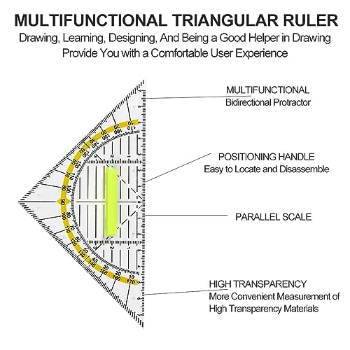 Materiale di alta qualità: Il righello triangolare è fatto di plastica di alta qualità, durevole e flessibile, che è durevole e flessibile. È molto adatto per l'uso nelle scuole, nella formazione, nell'apprendimento e nella vita lavorativa.
