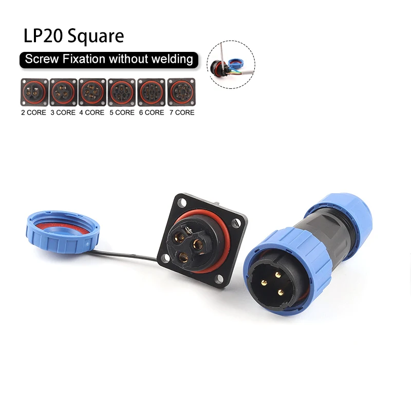 LP20 IP68 Square Male Female Aviation Plug&Socket Solderless Screw Crimp Cable Outdoor Waterproof Wire Connector 2/3/4/5/6/7pin