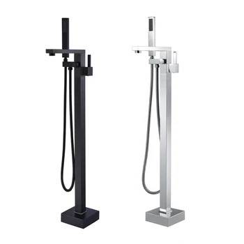 Square Floor Stand Bathtub Faucet Bathroom Rotate Bath Shower Faucet Quality Solid Brass Chrome & Black Bath Tub Water Mixer Tap