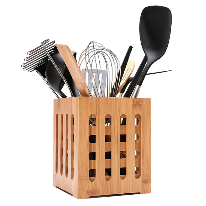 Square Wood Kitchenware Tube Chopsticks Box Container Kitchen Utensil Set Holder Shelf Food Storage Containers Food Storage