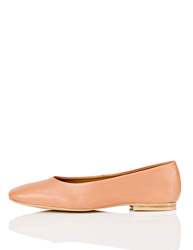 FIND Square Toe Soft Leather - Ballerine Donna, Marrone (Azalea Peach), 40 EU