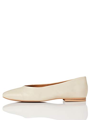 Find. Square Toe Soft Leather Ballerine Punta Chiusa, Avorio (Bone), 36 EU