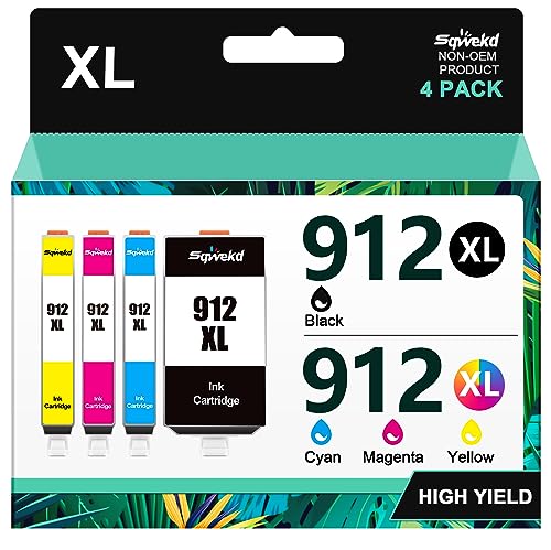 Sqwekd 912 912xl compatibile per HP 912 xl per HP OfficeJet 8010 8012 8013 8014 8015 8017 8018 per OfficeJet Pro 8022 8023 8024 8025 8030(Nero, Ciano, Magenta Giallo, 4-Pack)