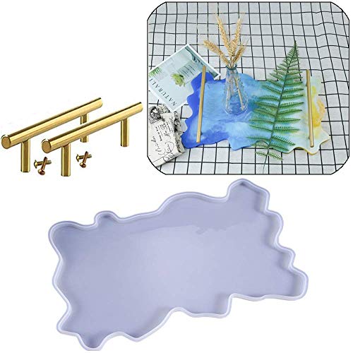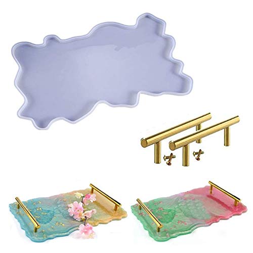Quantità e dimensioni: 1 x stampi Lrregular 2 x manici dorati. La forma del vassoio è di circa 392 x 230 mm, dimensioni del manico 150 x 30 mm, è possibile aggiungere pigmenti e decorazioni come si desidera creare stili artigianali con stili diversi.