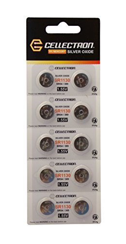 SR1130 10 - Pila a bottone in ossido d'argento SR1130 / SR54 / 389, 1,55 V Cellectron