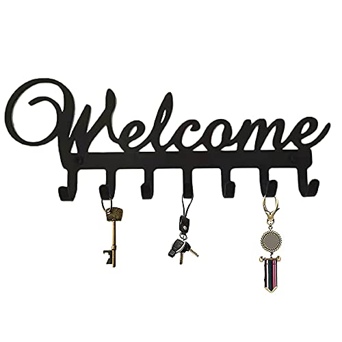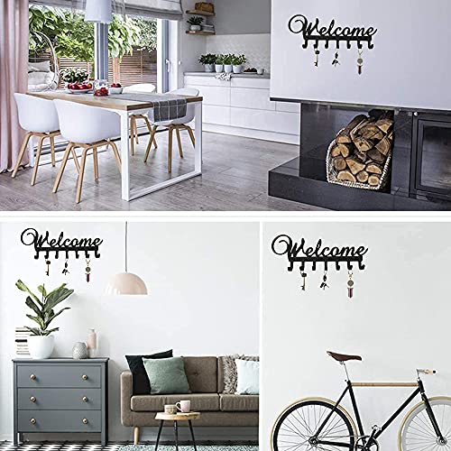 Design Unico: Il portachiavi a parete è progettato con la parola "Welcome" e ha una finitura nera, che aggiunge un'atmosfera retrò alla tua stanza, e la parola benvenuto può anche farti sentire caldo.