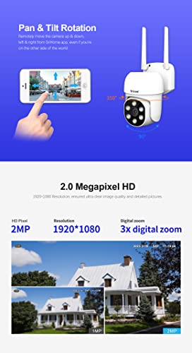 【2MP FHD & Audio bidirezionale】La risoluzione fino a 1920 x 1080, con zoom digitale 3x, ha garantito una qualità di immagine ultra chiara e immagini dettagliate. Questa macchina fotografica ha un microfono incorporato e un altoparlante di alta potenza, rendendo le conversazioni più facili e confortevoli