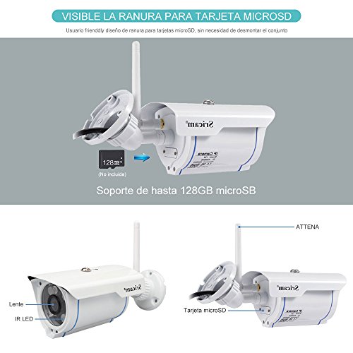 Sricam SP007, telecamera di sorveglianza Wi-Fi esterno/interno, Impermeabile, 720P, HD, H.264, P2P, IR, visione notturna, rilevamento di movimento, Mini fotocamera di sicurezza per uso domestico, in auto, bianco