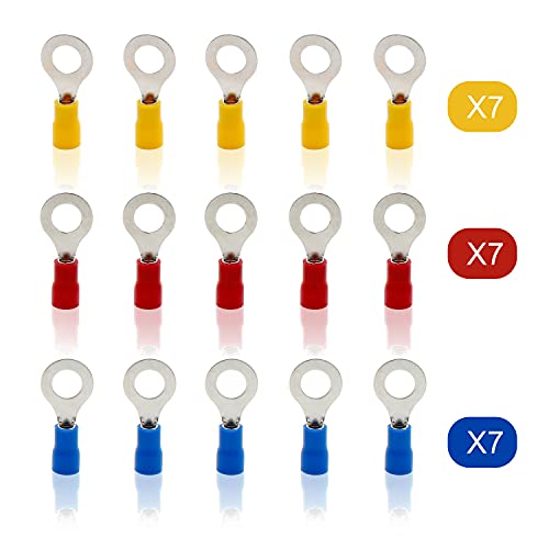▶ Imballaggio: 105 pezzi dello stesso tipo, stesse dimensioni, anello isolante a crimpare di colore diverso possono soddisfare la maggior parte delle tue esigenze (rosso, giallo e blu).