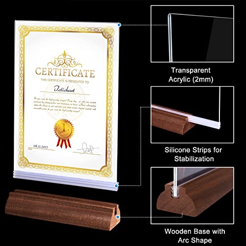 Design a doppio lato e uso sicuro: il design verticale a forma di T consente di mostrare segni su entrambi i lati. La base in legno senza sbavature e, dopo la lucidatura, gli angoli del pannello in acrilico sono lisci, i nostri supporti per menu da tavolo non ti faranno male alle mani durante l'uso.