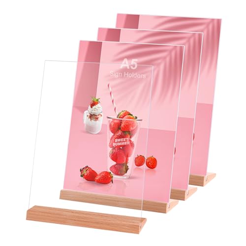 Srvnpioy Porta Menu A5 da Tavolo in Acrilico (4 Pezzi) Forma a L, Espositore da tavolo A5, Supporto Plexiglass A5, Porta avvisi A5, Supporti menù A5 in legno per Ristoranti, Hotel, Negozio, Ufficio