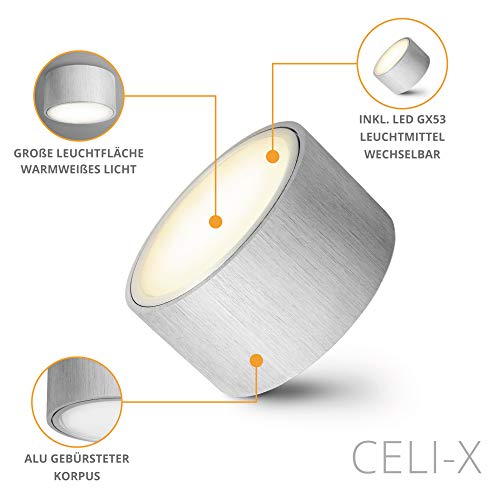 SSC-LUXon CELI-X - Faretto da soffitto a LED, extra piatto, LED GX53, bianco caldo, 4,5 W, 230 V, in alluminio spazzolato