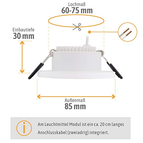 Dimensioni esterne: Ø 85 mm - Dimensione foro: Ø 60-75 mm - Profondità di montaggio incluso modulo: 3 cm - Materiale: alluminio - Grado di protezione: IP 65