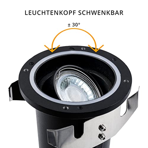 SSC-LUXon JUAVI - Faretto da pavimento dimmerabile e orientabile, IP67, rotondo, con LED GU10, 7 W, luce bianca calda, 230 V, 3 pezzi