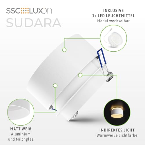 SSC-LUXon Lampada da soffitto a LED Sudara, con LED da 5 W, luce bianca calda, 230 V, da incasso, colore: bianco