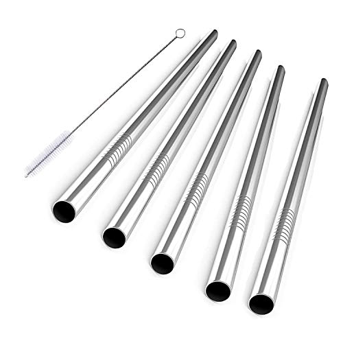 Ssguer9 - Cannucce in acciaio inox riutilizzabili, in metallo, in acciaio inox, confezione da 5 pezzi, extra larghe e dritte con spazzola per la pulizia