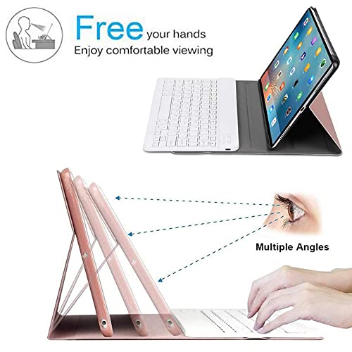 SsHhUu Custodia con Tastiera per iPad PRO 12,9 Pollici (1a e 2a Generazione, Modello 2015 e 2017), Custodia Protettiva con Tastiera Staccabile per iPad Pro 12.9", QWERTY Tastiera Wireless, Or Rosa