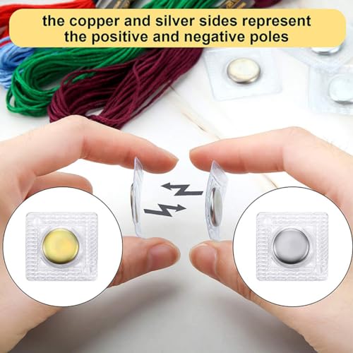 【Promemoria suggerimenti】 Distinguere il magnete giallo come polo positivo e il magnete argento come polo negativo, particolarmente adatto per tessuti leggeri e sottili. Durante la cucitura, assicurati che i magneti siano rivolti nella posizione corretta.