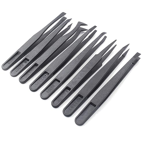SSRDFU pinzette di precisione - 8 pinzette in plastica antistatiche, strumento di riparazione per tweezer, in plastica, antistatico, ideale per saldatura elettronica, creazione di gioielli