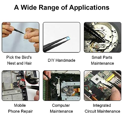 ✔️ Praticità: questo set di pinzette copre una vasta gamma di usi, che si tratti di riparazioni elettroniche, creazione di gioielli, modellismo o cosmetici, ti tornerà utile.