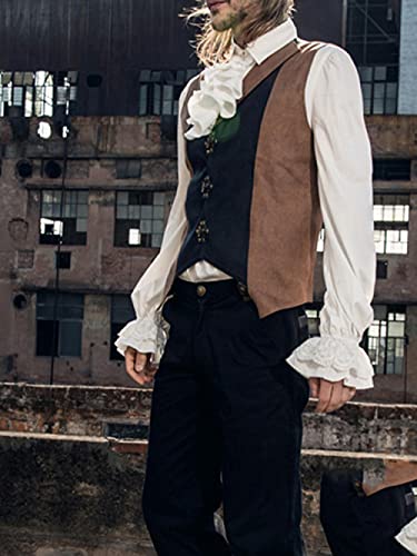 SSSBY Camicetta vittoriana per Uomo Gothic Lolita Camicia a Maniche Lunghe Retro Ruffle Steampunk Tops Costume di Halloween-Bianco_m
