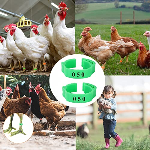 SSyang 100 Pezzi Anelli per Pollo,Anello di Piccione di Plastica,Riutilizzabile,2,8 cm,Anello per la Punta del Pollame,per l'identificazione di Pollame,Polli,Piccioni,Pappagalli(Verde)