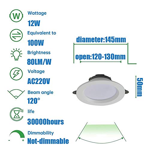□□ Easy Installazione □: Diametro della luce downlight di 145 mm, profondità di installazione di 50 mm ca., 2 molle attrezzate su ciascun lato per rendere le macchie più stabili sul soffitto.Questo tipo di posto è particolare per essere estremamente extra appartamento che è molto perfetto per la decorazione del soffitto interno.